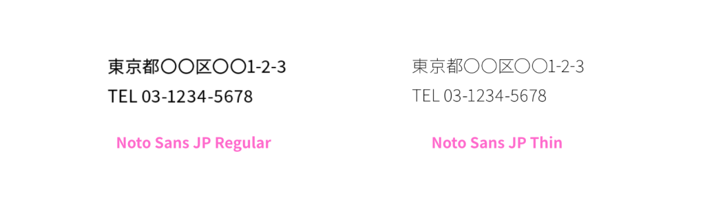 細いフォントを使いすぎると、視認性が低くなります。実際に印刷したときに見やすいサイズを心がけましょう。