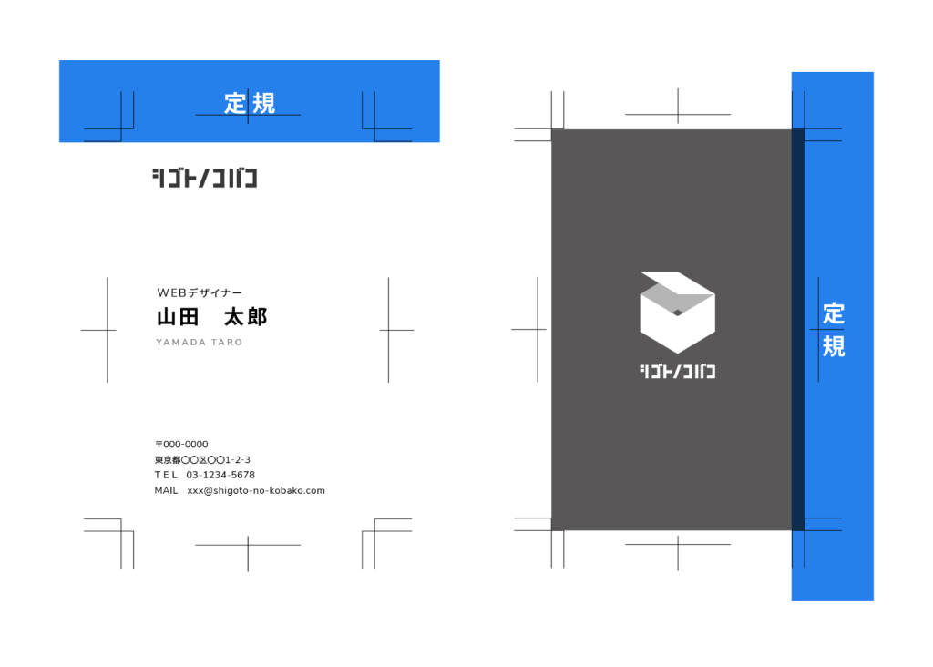 名刺はカードサイズ(横:91mm、縦:55mm)です。